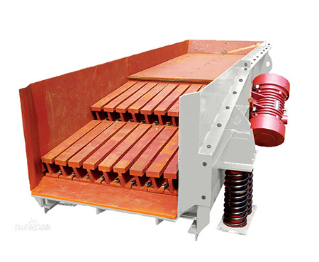 ZSW系列振動(dòng)給料機(jī)主要由振動(dòng)機(jī)架、彈簧、振動(dòng)器、電機(jī)振動(dòng)架及電機(jī)等組成。激振器是由二特定位置的偏心軸以齒輪相嚙合組成,裝配時(shí)必須使兩齒輪按標(biāo)記相嚙合,通過(guò)電機(jī)驅(qū)動(dòng),使兩偏心軸旋轉(zhuǎn),從而產(chǎn)生巨大合成的直線激振力,使機(jī)體在支承彈簧上作強(qiáng)制振動(dòng),物料則以此振動(dòng)為動(dòng)力,在料槽上作滑動(dòng)及拋擲運(yùn)動(dòng),從而使物料前移而達(dá)到給料目的。當(dāng) 物料通過(guò)槽體上的篩條時(shí),較小的料可通過(guò)篩條間隙而落下,可不經(jīng)過(guò)下道的破碎工序,起了篩分的效果。